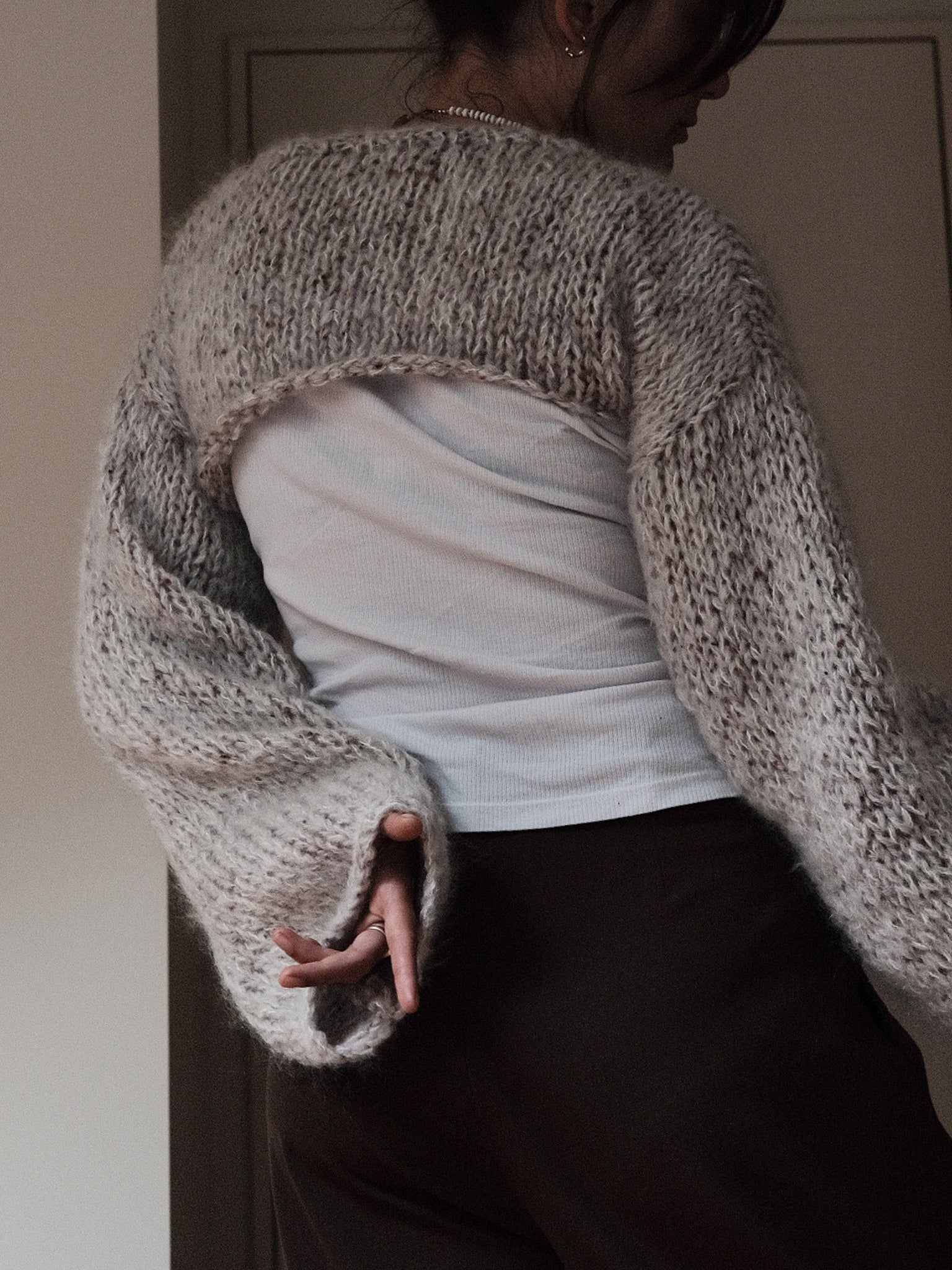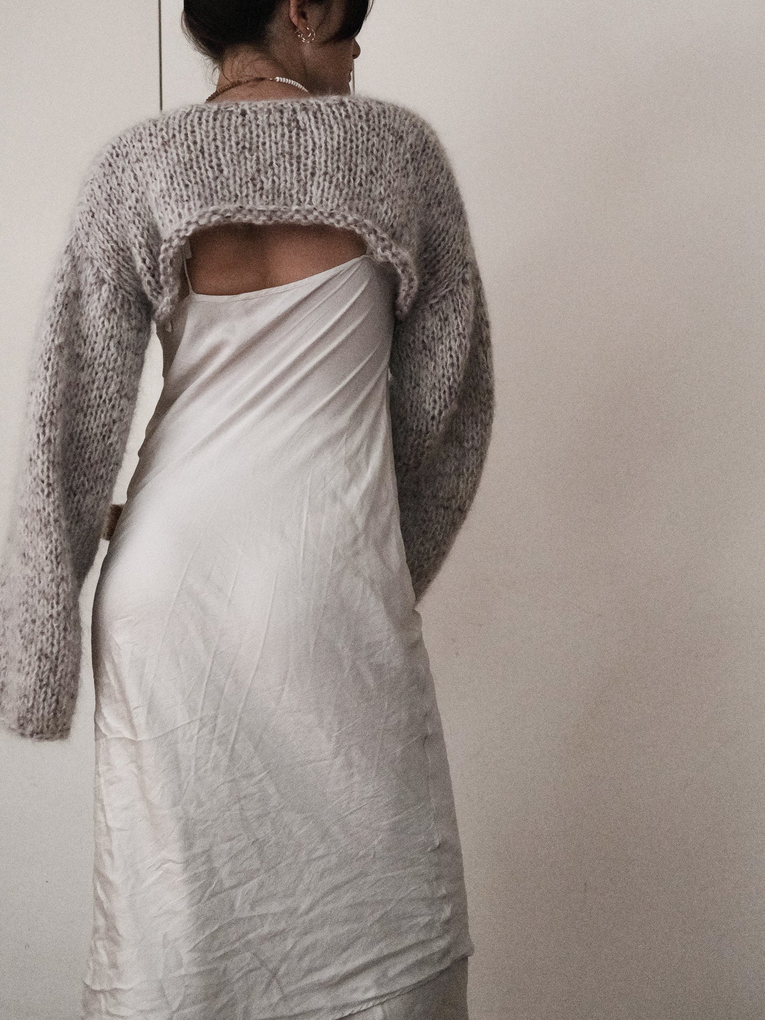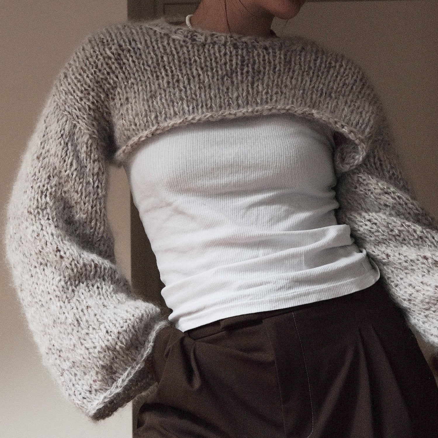 Monday Journal Knitting Pattern! This is to make a long sleeve shrug top using a combination of wool and mohair yarns to make the softest, cosiest bolero - perfect for layering over every outfit no matter what the season. This knitting Pattern includes a PDF download for sizes XS-XL of the top in the product pictures. Pictured is a S for reference.