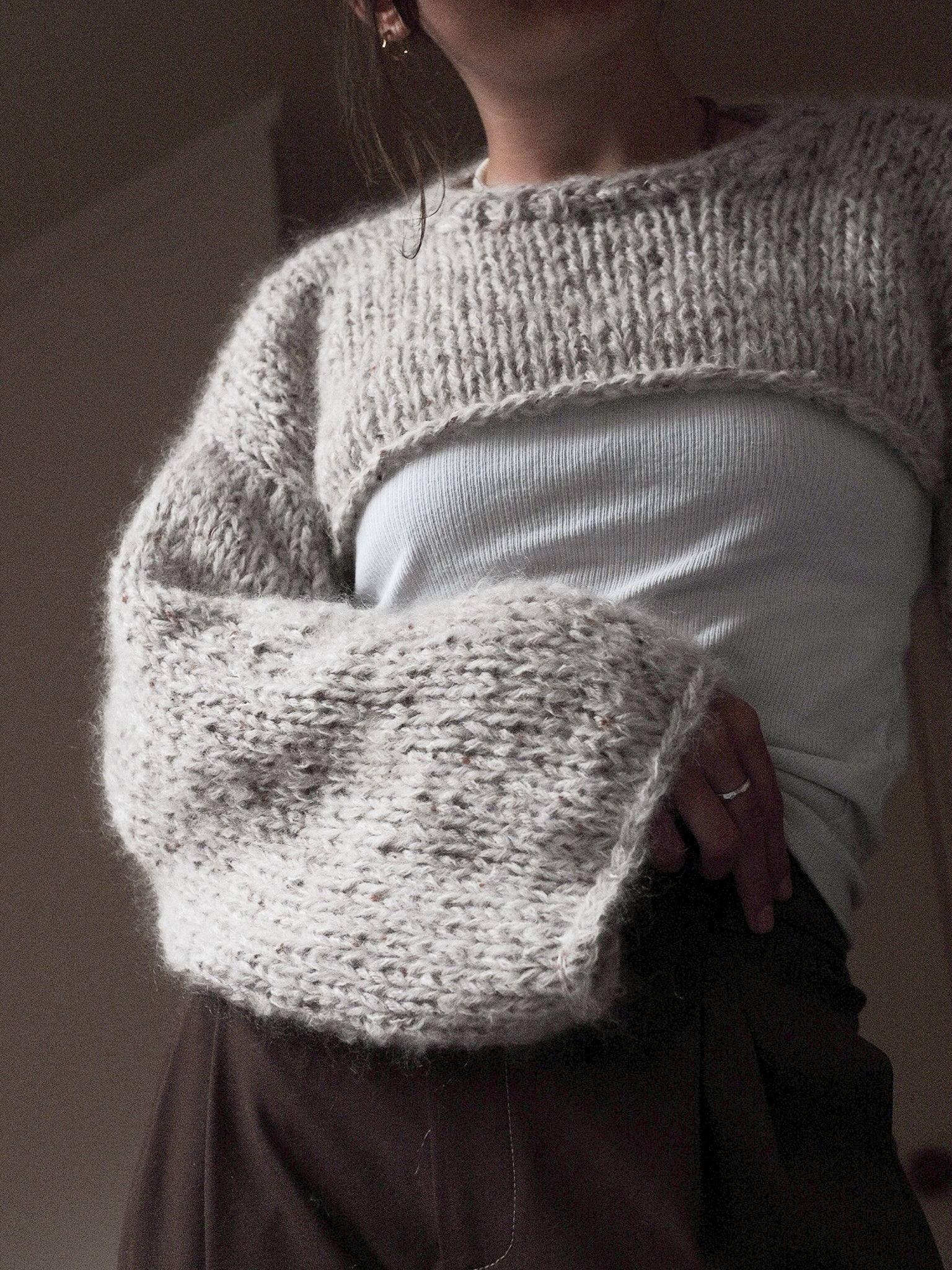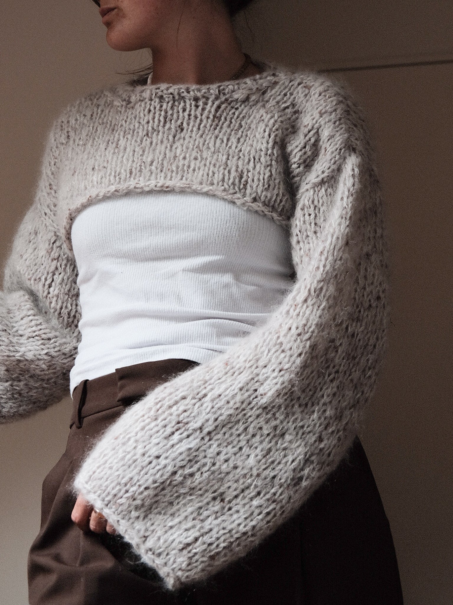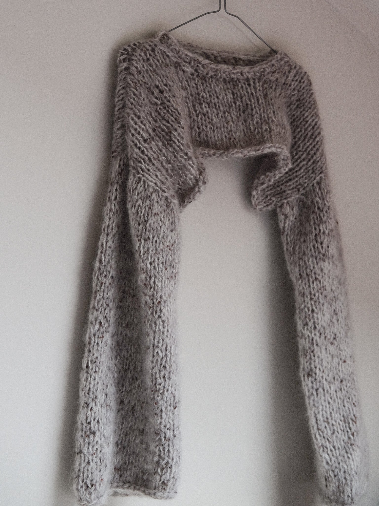 Monday Journal Knitting Pattern! This is to make a long sleeve shrug top using a combination of wool and mohair yarns to make the softest, cosiest bolero - perfect for layering over every outfit no matter what the season. This knitting Pattern includes a PDF download for sizes XS-XL of the top in the product pictures. Pictured is a S for reference.