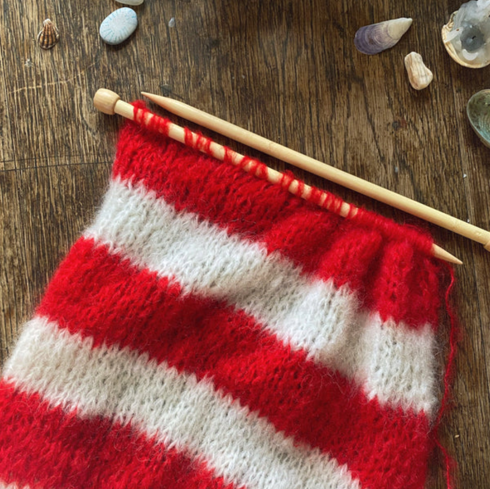 12mm needles, 8mm needles, 2 x 50gm 12ply brushed, mohair yarn and a tapestry needle.