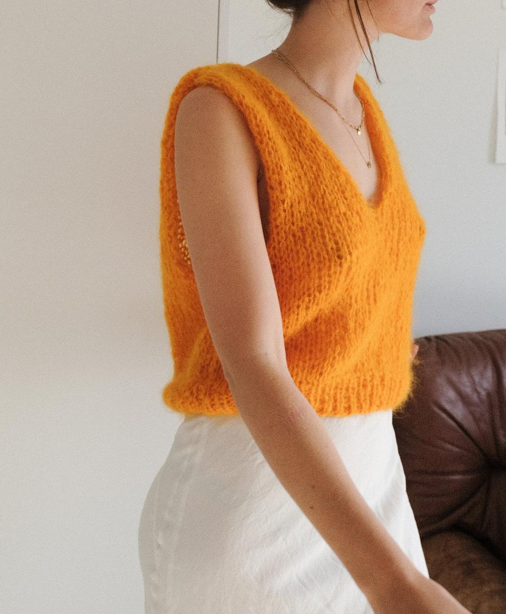 Monday Journal Knitting Pattern! The perfect beginner's pattern if you are new to knitting and don't know where to start. This knitting pattern includes a one size PDF download for sizes S-L of the vest in the product pictures. Pictured is a size S for reference.