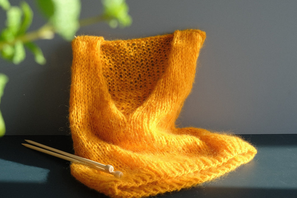 12mm needles, 8mm needles, 2 x 50gm 12ply brushed, mohair yarn and a Tapestry Needle.