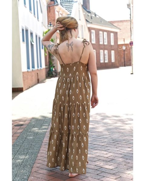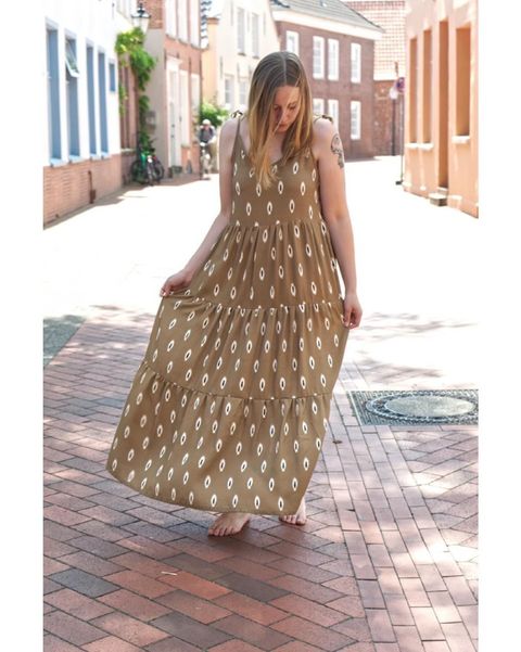 Please note: the pattern is quite simple but because of the V-neck the dress is more suitable for advanced sewers. In addition, you should have a sewing machine that sews fine fabrics without any problems.