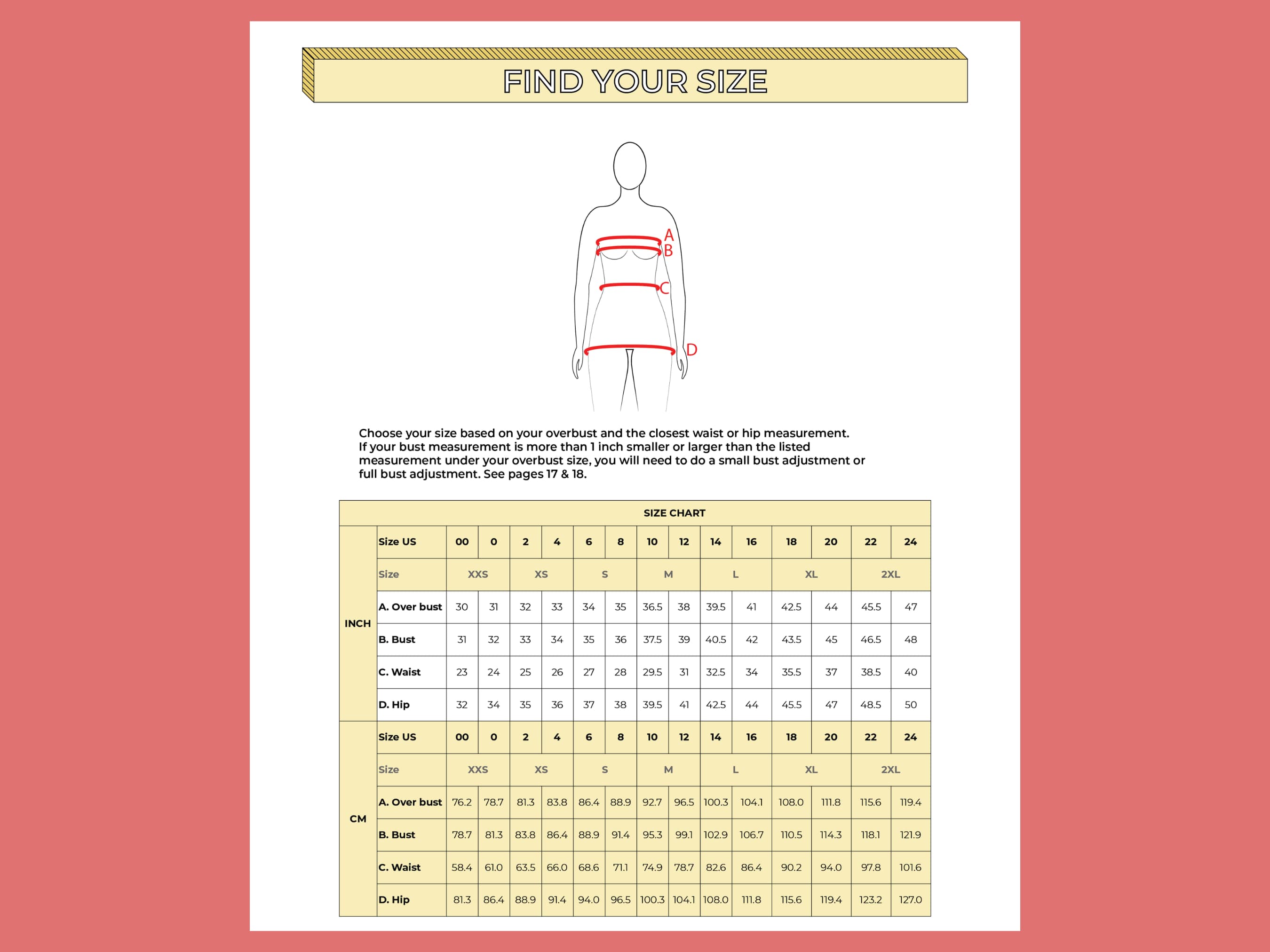 Choose your size based on your overbust and closest waist or hip. Model is 5'4 (B:36 W:28 Hip: 38) wearing size 8.