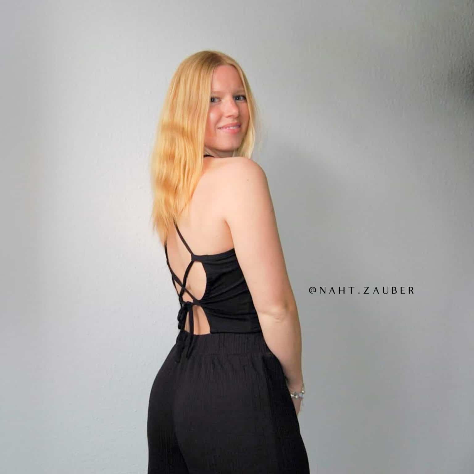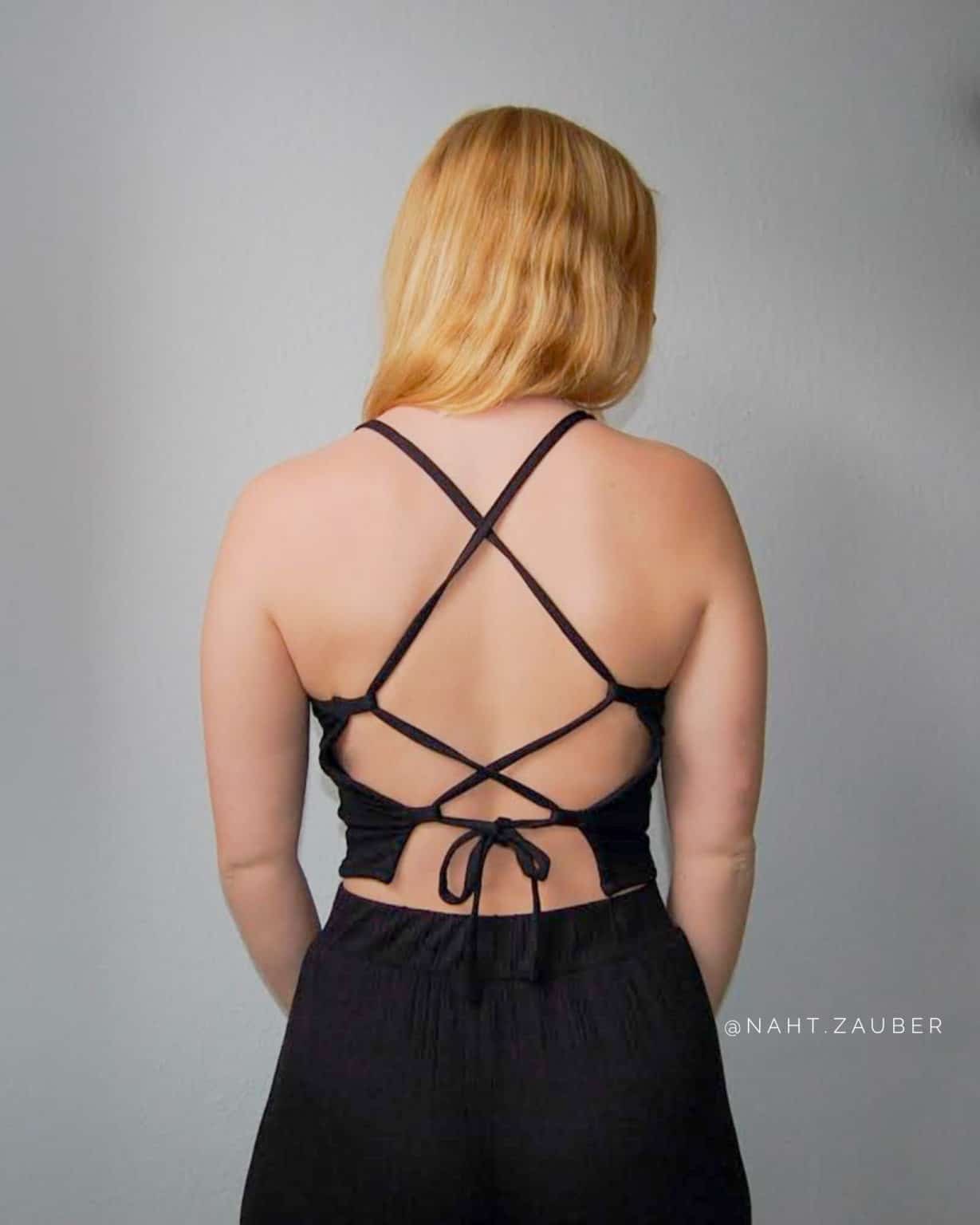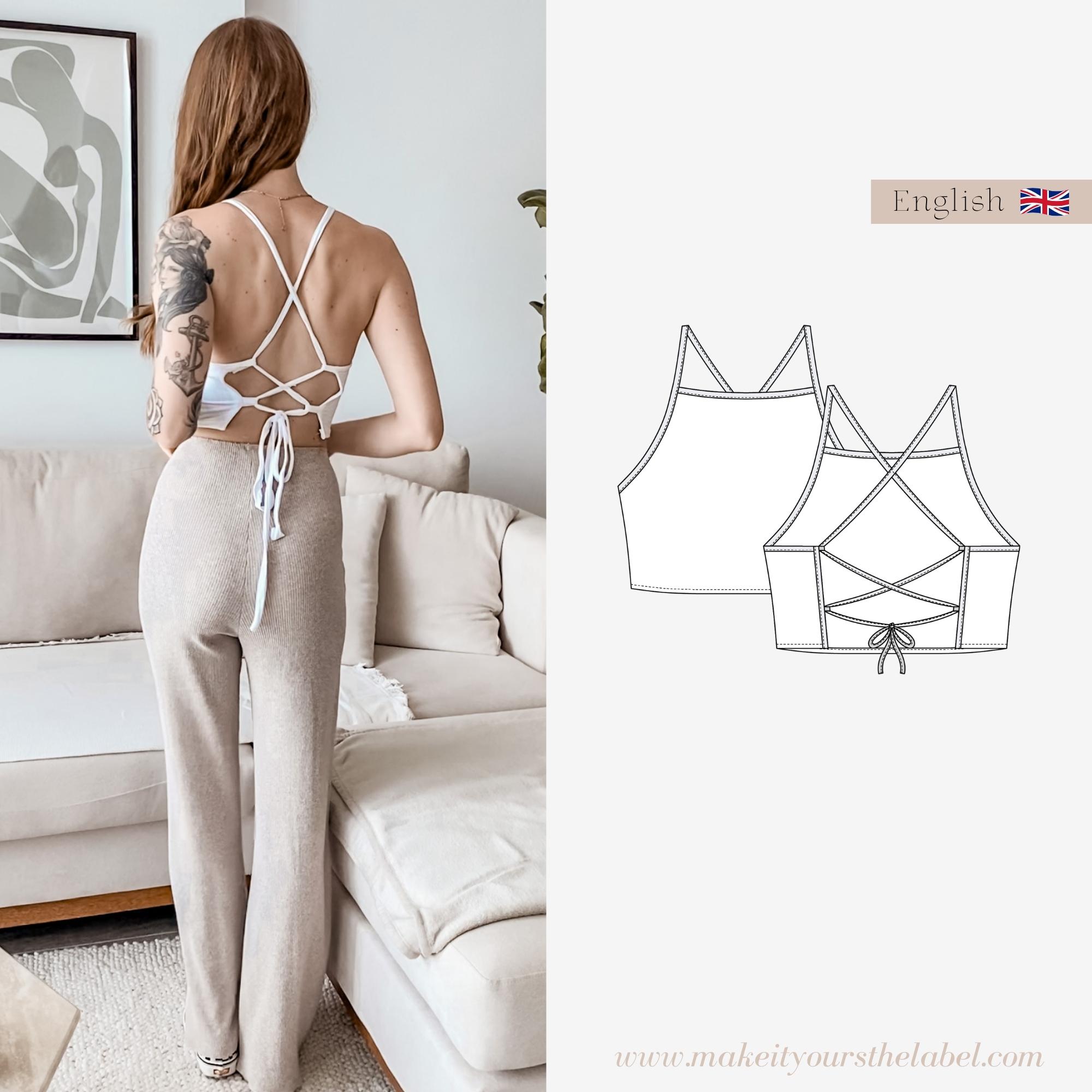 Pdf sewing pattern for the open back crop top. This pattern is a cropped style with an open back. The open edges, loops and straps are made from bias tape.