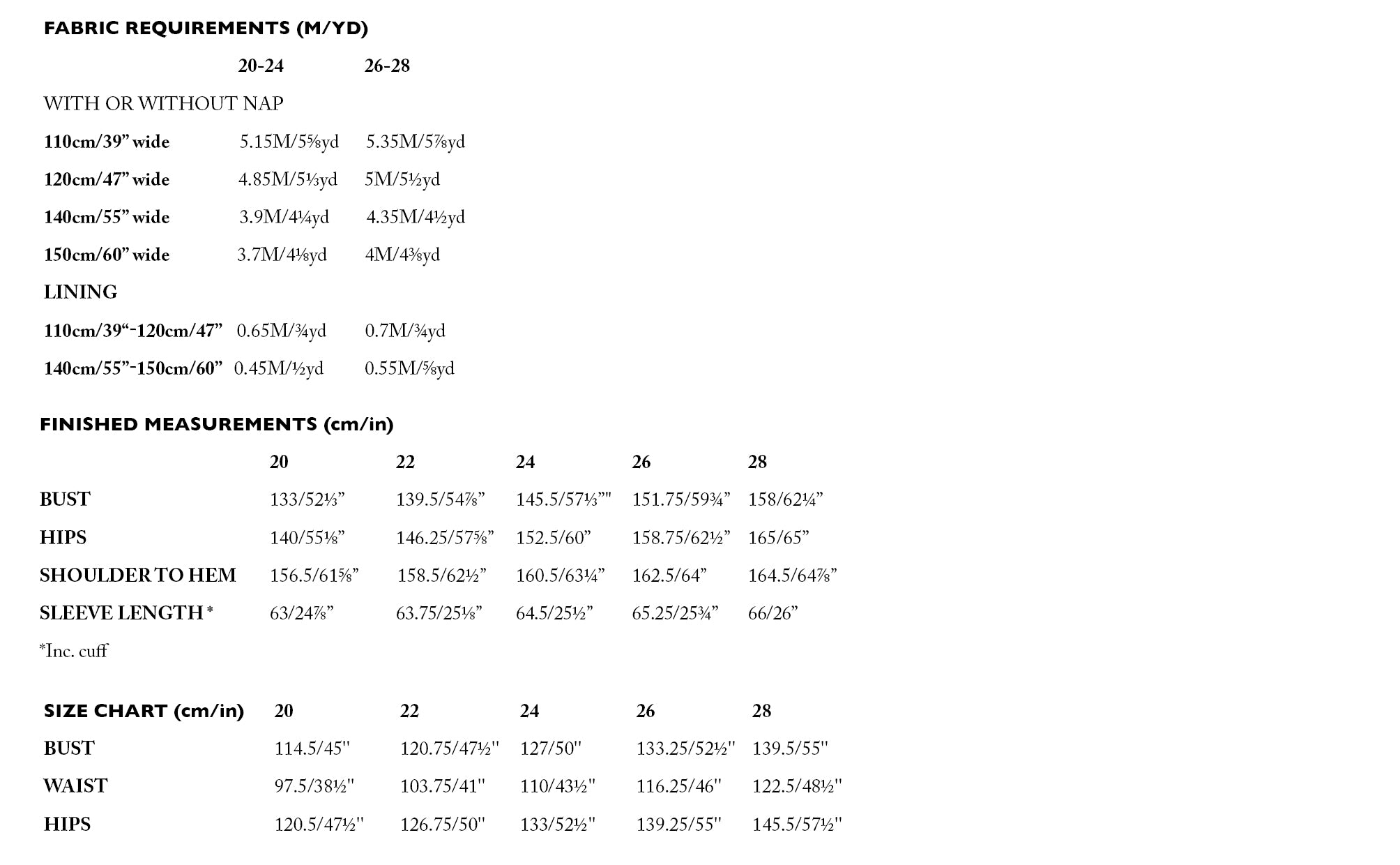 Main fabric, lining, 18 x 14-18mm buttons and 70cm interfacing.